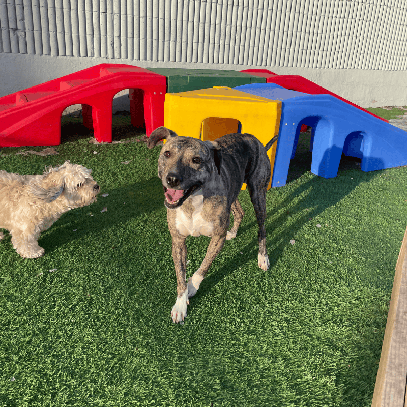 Before their first overnight stay, every new boarder begins with an assessment day to get to know their personality and comfort level. Next, your pup enjoys two daycare visits to make friends, build confidence, and learn that Happy Houndz is their home away from home.